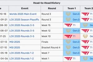 体育资讯04月08日讯 LCK常规赛,T1在Bo3中0:2不敌GEN.G。在双方近10个大场交手中,T1仅在去年常规赛赢过1场,其他都由GEN取胜。