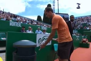 比赛第二盘,在连丢8局后,梅德韦杰夫怒砸球拍至其粉碎,被主裁警告。